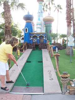 This past weekend Mom and Dad surprised us by coming down for a couple days. They got here Friday afternoon and that night Scott and Dad went to a Sun's game. The game went into double overtime so they had a lot of fun! Mom and I went shopping. Then on Saturday we showed them my school and practicum on the way to Mesa. We looked at the temple and Mom and Dad got me temple clothes for my birthday! We then went to dinner and then to a place called Castles and Coasters to miniature golf. As you can see from the pictures it is a really fun place. Scott and I want to go back sometime and ride the roller coasters! After golfing we went to our apartment to play a really FUN game of Catan. (note to all readers besides Mom..fun is a relative term!) Overall we had a really great weekend though. Thanks Mom and Dad for coming!